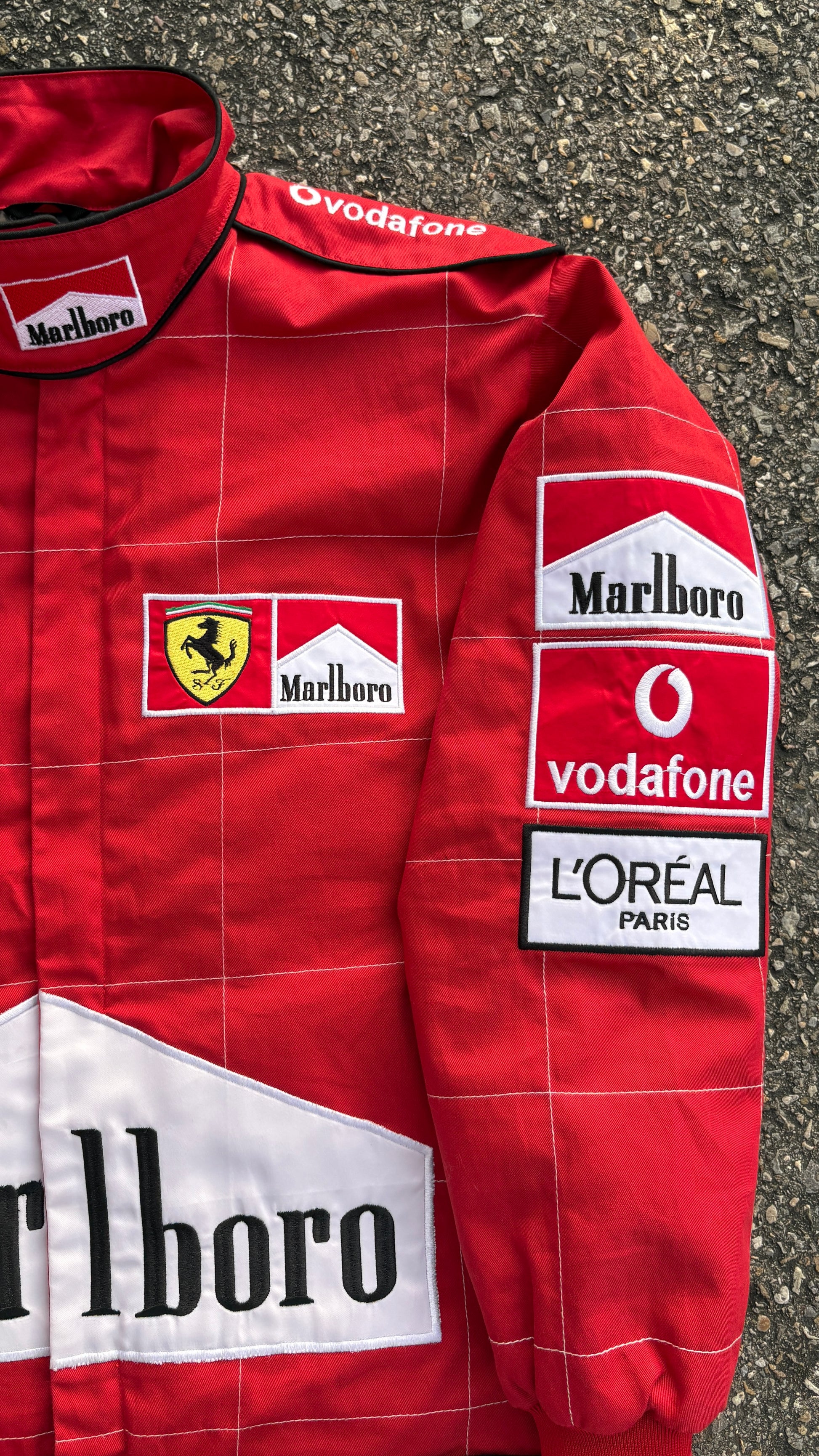 Carrying the esteemed Ferrari insignia. This jacket pays tribute to the legacy of Michael Schumacher; a symbol of excellence in racing history. Own a piece of Ferrari history and experience the blend of style, comfort, and racing prestige.